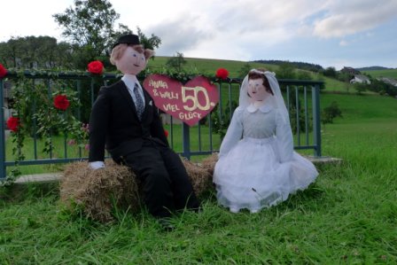 Neulich auf der Heimfahrt war uns eine ebenso hübsche, wie liebevolle und originelle Inszenierung am Straßenrand aufgefallen. Gesehen, angehalten, ausgestiegen und fotografiert. :-) Da wurde der 50. Hochzeitstag von Anna und Willi gefeiert – niedlich, was sich die Leute so alles einfallen lassen. Aber der 50. Hochzeitstag ist ja auch wirklich etwas ganz Besonderes. Den schaffen noch lange nicht alle Ehepaare … Aber wenn, dann ist das wirklich ein Grund zur Dankbarkeit und zum Feiern. Und manches Jubelpaar beschenkt sich aus diesem Anlass selbst. Bei uns im Solitaire-Blog haben wir bereits einmal genau darüber geschrieben und von unseren Kunden erzählt, die sich zu ihrer eigenen Goldhochzeit neue Ringe gekauft haben.Was für eine wunderbare Geste, nach 50 Jahren den unendlichen Bund der Liebe symbolisch zu erneuern.