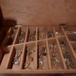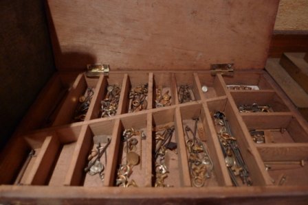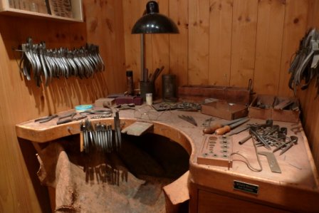 Im Keller der großen Werkstatt der Lechlers befindet sich unser privates Juwelier- und Goldschmiede-Museum. Seit Jahren sammelt und bewahrt Dieters Sohn Stefan Lechler, seines Zeichens Goldschmied mit 15-jähriger Meistererfahrung, Werkzeuge und sonstige Dinge, die mit unserem vielseitigen Beruf zusammenhängen, eben auch besondere Verpackungen und Etuis. Das hat sich auch bei unseren Kunden herumgesprochen und immer wieder geschieht es, das meist ältere Damen, mit der einen oder anderen Rarität in unser Geschäft kommen und fragen, ob wir das gebrauchen können. „Sonst kommt doch alles zum Sperrmüll“ – so hört man ab und zu. Natürlich können wir das gebrauchen, denn …… es ist doch mehr als faszinierend, was rund um die Schmuckproduktion in den vergangenen Jahrzehnten so alles gefertigt und getüftelt wurde. Die Mode hat sich zwar geändert, aber der Grundgedanke der Schmucketuis ist doch erstaunlich gleich geblieben.