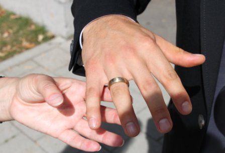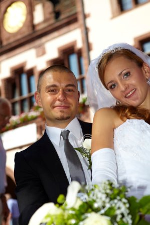 Und hier seht ihr die beiden an ihrem Hochzeitstag vor dem Freiburger Rathaus: