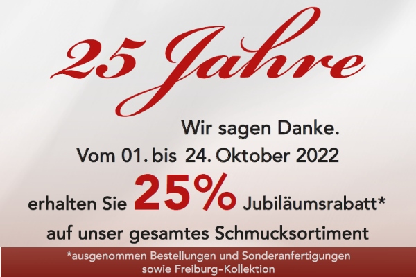*ausgenommen sind Ehe- und Partnerringe, Anfertigungen, Umarbeitungen, Reparaturen und Freiburgschmuck.